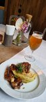 Из 8 ресторанов Калининграда, исследованных за неделю, этот - лучший из лучших. Так получилось, что побывала тут дважды. Первый раз - спонтанно по прилету в будний, тк рядом с отелем. Хотя знала, что мест без брони обычно нет (ресторан камерный, буквально на 10 столов + терраса), и себе бронировала на воскресенье. Но решила наудачу заглянуть - предложили место на открытой террасе. Едва сделала заказ, как ливанул дождь, даже попытка пересесть за столик под зонтом не спасла. Надо отдать должное хостесс, меня эвакуировали внутрь - вроде слетела чья-то бронь. Официанты все знают по меню в деталях и интересно рассказывают. Звездой обеда стали бычьи хвосты с запеченой капустой (фото 1). Реально почувствовала себя в Испании, в таверне у арены после корриды:) Соус демиглясс был таким, каким должен быть, мясо нежное, обглодала все косточки:) , капуста и мягкая, и хрусткая одновременно. Единственное, что можно команде порекомендовать - придумать какие-то салфетки-держалки, как для ножек птицы делают, чтобы удерживать косточки. Обслуживание быстрое, ценник разумный. Надо иметь ввиду, что тут один туалет, но этого достаточно. В общем, обед удался на славу. Второй раз обедала в воскресенье, на этот раз по резерву. Отдельный плюс заведению за место для одной персоны - столик идеально вписан рядрм с другим на небольшом возвышении, полуприкрыт растением, очень уютно (Фото). Официант может подавать блюда и убирать тарелки, не поднимаясь к соседнему столу. В этот раз пробовала рубанину из скумбрии (восторг, не пересолено, нежная рыбка овощи и соус гармонируют) и ребра леща (вновь восторг - не пережарено, а для костей специальные щипчики подают + дивный гарнир из 3х вариантов моркови - запеченой, маринованной, пюре). Кстати, в первый визит к хвостам брала светлое, к рыбе темное разливное пиво, и портер понравился мне больше. Под псевдонимом творожник среди десертов есть баскский чизкейк, весьма достойный. Чего нет - кофе без кофеина, но эта тема вообще непопулярна в Калининграде. Итого, два замечательных гастрономических приключения. Надеюсь, владельцев не одолеет бес масштабирования бизнеса, тк прелесть этого заведения, в том числе, в его камерности . А при расширении качество удержать крайне сложно. Пока же этот ресторан из серии "сюда стоит специально прилететь из Москвы пообедать:)"