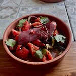 Продолжаем путешествие по Крыму. Хинкали бомба, но нам принесли сырое хачапури, мы отказались есть сырое тесто, после чего нам просто запекали ее, с яйцом уже размешаным и отрезанным куском)) официан вручил это нам, но управляющая сработала профессионально, заменив на другое блюдо. В решении возникших конфликтов плюс звезда, так как официанты вообще не знают стандартов. И все равно хачапури делать не умеют, это скорее булочка с сыром. Сыр не тянется, тесто никакое … сыры идут другие, не кайф. Очень жарко!!! Кондиционер не справляется. Посидели бы ещё выпили чего-нибудь и заказали, но находиться невозможно. Еда - 3/5 Обслуживание - 2/5 Соотношение цена/качество - 3/5 Не рекомендуем к посещению.