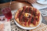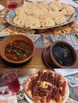 пришли официант был не особо довольный, попросили одно блюдо сказали что его долго будут делать и не особо хотели его готовить, в итоге заказали потом нам пришли сказали что хинкалец которые заказали нет, потом принесли блюда, хинкали были вкусные но с вишней и творогом нет, творога не было совсем, морс был как будто постоявший и разбавленный, хачапури были не вкусные тесто то ли не пропеклось то ли что, начинка была так себе сыр не тянулся и был как будто гранулами, орешки со сгущенкой были как будто покупные и сгущенка там была так себе, из вкусно короче только хинкали остально так себе