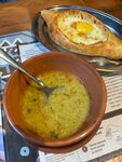 Что понравилось - суп чихиртма, легкий, много курицы, вкусно приготовлен. Хачапури по-аджарски, тоже приготовлено хорошо, тесто мягкое, сыр хорошо тянется. Хинкали с грибами интересно и необычно. Что не понравилось, хинкали с сыром, сыр почему-то горчил, что-то надо менять, хинкали говядина, свинина хотелось больше говядины, фарш совсем светлый!