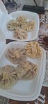 С грибами понравилось больше,чем с мясом. Начинки маловато, тесто ооочень тонкое, обычно наедаешься двумя штуками, а тут и тремя не наелись🤷😊Само кафе понравилось, дизайн крутой, официанты приветливые)