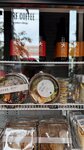 Что-то с обслуживанием. Не могут разобраться. Одна девушка принимает заказы и варит кофе. Вторая перебирает холодильник. Третья просто стоит, что-то подсказывает по хранению и ест шоколадное кольцо. С утра, когда народ спешит на работу, должно быть более организовано все. Интерьер классный, но с персоналом надо поработать