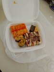 Сделала заказ по телефону. Через пару часов забрала. Это единственное за что можно поставить звезду. роллы на вкус так себе. Но самое ужасное это кости в запечённых,где под корочкой ничего не видно.Вообще такое не допустимо, на мой взгляд. Пришлось выкинуть