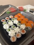 С чего бы начать... а начну с того, что ребята совсем не умеют готовить рис, он здесь совсем как каша, выглядят роллы хорошо, но на вкус очень плохо, правильно сварить рис можно, просто посмотрев 1 раз гайд в ютубе, это может сделать любой школьник. Креветки переваренные, творожный сыр жидкий. Том Ям норм, Мисо плох. Сам, как любитель приготовить роллы, могу смело заявить, что здесь они не больше чем на двоечку. Васаби и имбирь в комплекте не идут, они докупаются 🤡