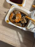 Заказали доставку: зимний сет и 2 вока. Порции просто микроскопические, я больше нигде такого не видел. Вок в маленькой коробочке на дне, роллы малютки. Вок был вкусный, а вот роллы ужасно приготовили, калифорнию есть было невозможно, авокадо был твердый и горький. В целом качество ингредиентов слабое, совершенно никакого удовольствия от заказа не получили. Не советую там заказывать.