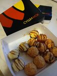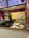 Не большое помещение, но уютно, чисто. Посидеть там не удастся, только для ожидания. Очень вкусно, свежие. Доброжелательны, вежливые, улыбчивы. Хорошее место. Советую.