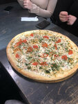 Пицца по приемлемым ценам и это единственный плюс. Внутри заведения интерьерчик устаревший, все общарпанное и плитка на полу потрескавшаяся. Туалет вонючий и не очень чисто, даже мыла нет, чтобы руки помыть. Кофе американо не вкусный, кислая бодяга, пицца сносная на вкус. В меню только пицца, чай и кофе. В это заведение больше не пойдем.