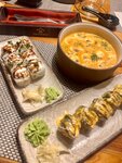 Отличное место для любителей японской кухни! Заказывали роллы "Филадельфия" и "Тануки", оба варианта – просто пальчики оближешь: свежие, вкусные, с идеально приготовленным рисом. Суп "Рамен" тоже очень порадовал – наваристый бульон и нежнейшая свинина. Обслуживание быстрое, персонал вежливый. Цены вполне адекватные за такое качество. Интерьер уютный, есть и доставка, что очень удобно. Рекомендую всем, кто хочет вкусно поесть японской кухни без лишних переплат! Обязательно вернусь снова.