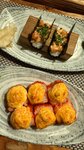 На японский ресторан это мало похоже, в блюдах преобладает один гарнир (рис) а основного ингредиента очень мало, поэтому блюда получаются так себе, порции очень маленькие, просто размазанные по большой тарелке, в общем ешь один рис! А ну и конечно забыл упомянуть про деревянные скамейки на которых больше 30 минут седеть не комфортно, хотелось бы по мягче!