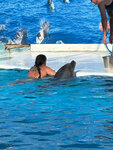 Плавали с дельфинами всей семьей. На представление не ходили. Как нам сказали в кассе - все дни, кроме понедельника в 10-00 и 15-40 есть возможность поплавать с дельфинами. 3000 рублей круг с человека, семейный билет (3 человека) 9 тыс, но общее фото с дельфинами на помосте в подарок. От катания на дельфинах остались прекрасные впечатления. Подарите себе такое чудо!