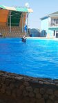 Мило , чисто . Хорошие дельфины . Сфотографировали с ними в воде . Много фоток , и даже есть видео за 2500 тыс . Работает каждый день кроме понедельника , в понедельник у них санитарный день . Представление один раз в день в 15 часов . Оператор направит как нужно фотографироваться с дельфином . Советую .