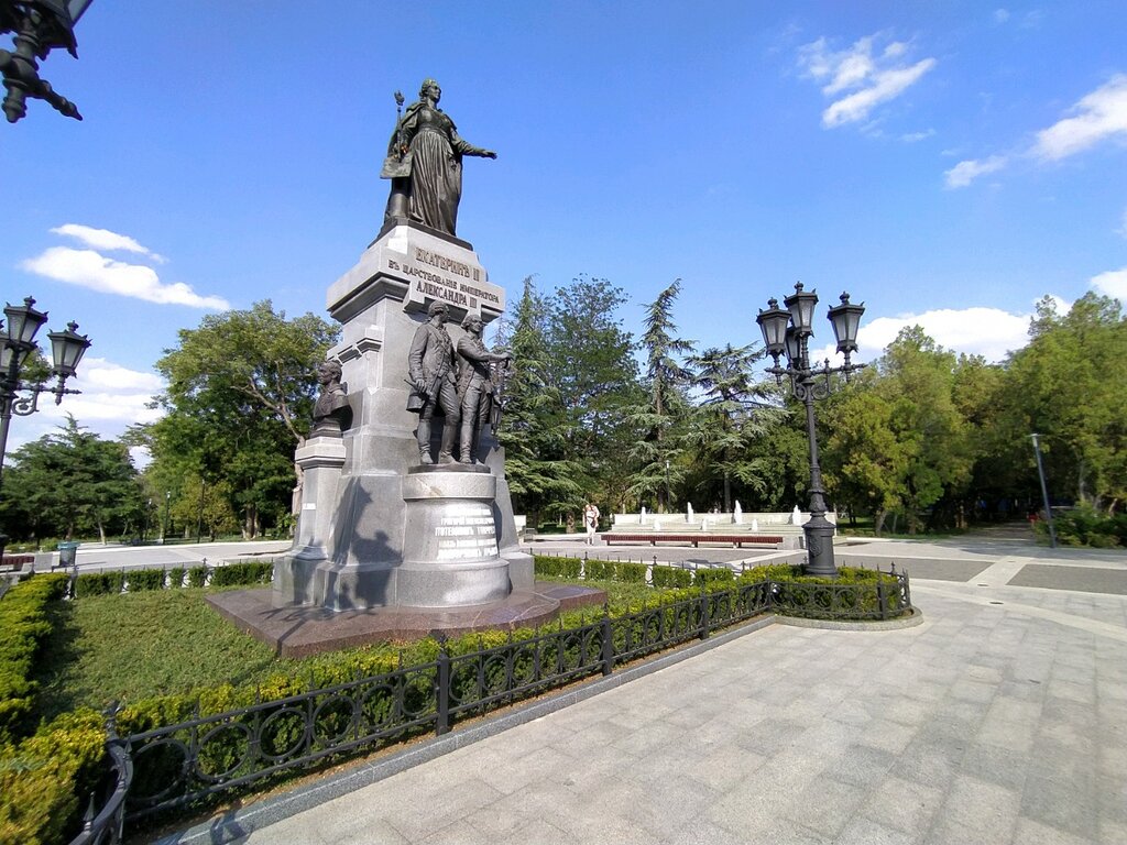 Небольшой благоустроенный уютный парк. Это первая в Симферополе территория, целенаправленно выделенная ещё в начале 19-го века под общественную парковую зону. Парк радует своей чистотой, ухоженностью, большим количеством различных парковых элементов (объектов), хорошим ландшафтным дизайном. Большая часть парка расположена наверху (по отношению к высокому берегу и к реке Салгир), часть парка находится на склоне, а часть лежит внизу совсем рядом с рекой. В парке много интересного для посетителей любого возраста: величественный памятник Екатерине Второй; фонтаны на площадке возле памятника Екатерине Второй; красивая ротонда, с которой открывается отличный вид на реку Салгир и окрестности; целое "шахматное королевство" - шахматная площадка, скульптура пешки, большой "шахматный фонтан"; фонтан "Мальчик с рыбкой", воссозданный по сохранившимся чертежам; стенды с информацией об историчеких событиях (путешествие Екатерины Второй в Крым, Новороссия 19 век, Крымская война 1853-1856 годов, Генеральная карта военных действий в 1769-1775 годов и др., всего 10-ть стендов); памятный знак Великомученикам русского народа и народов России; фонтан-родник, построенный для города греком А.Савопуло (1881 г.); искусственный водоем с островком и "фонтаном-гейзером"; фонтан, созданный в память о А.С. Пушкине; мост "Влюбленных"- пешеходный мост через реку Салгир; спортивная площадка; баскетбольная площадка и другое. В парке установленно большое количество скамеек, растут сосны, кедры, клёны, ясени, туи (аллея), гледичии, маклюры, софоры, кустарники, цветы и другие растения. Впервые о создании парка на этой территории упоминается в 1809 году, а в 1820 году здесь был создан казенный сад в английском стиле. Сад долгое время был известен как Бульварный, а затем как Центральный парк культуры и отдыха (ЦПКиО). В июле 2016 года парк был официально переименован в Екатериненский сад. Парк вместе с Симферополем прошел через череду глобальных событий (войны, оккупации, революции, распад Советского Союза и др.), несколько раз был реконструирован. К сожалению, площадь этого общественного парка со временем сократилась почти на один гектар (до 4 гектар). Хотелось бы, чтобы в этом замечательном парке сразу удалялись все "стихийные надписи" и "художества" на парковых элементах (например, надписи на коллонах ротонды красным фломастером; полосы,нанесенные краской другого цвета, на скульптуре пешки и др.), а также чтобы территория общественного парка, доступная для бесплатного отдыха посетителей, не сокращалась