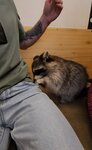 Очень милые енотики Пообщались с заводчиком, очень классный человек, на все вопросы отвечает, рассказывает Я поехала в толстовке с карманом и капюшоном - сказали, что очень удачная одежда, потому что так будет не больно, если енотик полезет на плечи и еще они любят доставать корм из карманов «Если енот что-то украдет - у него поднимется настроение»😅 Еще заводчик фотографирует какие-то моменты с енотиками)