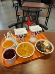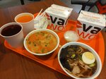 Забегали с мужем перекусить, взяли два комбо. В моем был суп том ям, вок с курицей и облепиховый напиток. К том ям рис нужно докупать отдельно, подается в баночке как соевый соус. Том ям в общем нормальный, в меру пряный, не сильно острый. Вау-эффекта не вызывает, пробовала и вкуснее. Но для быстрой еды на фудкорте норм. Вок вообще ни о чем, терияки не чувствуется. Лапша больше жирновато-маслянистая, как будто обжареная. Вок можно найти и вкуснее даже в аналогичных заведениях на фудкорте, не говоря уже о кафе. Напиток норм. Мы с мужем поменялись, я выпила его смородиновый, а он мой облепиховый. Оба напитка вкусные, не водянистые