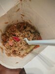 Еда в этом заведении на фудкорде Центрального Детского Магазина оставила не очень хорошие впечатления: бульон в рамене водянистый, не наваристый, лапша слишком плотная на мой вкус (есть ощущение "альденте", я привык, что в таких супах более развариста лапша), а жареный рис слишком жирный и маслянистый, кусочки мяса в нем были жёсткие (супруге лапша тоже показалась очень жирной). И лишь к облепиховому морсу у меня не было претензий.