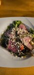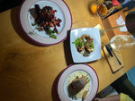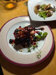 Сначала хорошее: гребешки, запечённые в манговом соусе с пармезаном очень хороши,брать надо непременно! В остальном кухня довольно спорная: в салате с жареным баклажаном зачем-то фета, в салате с уткой на первый план лезет вкус утиного жира, шашлык из свинины нейтральный,как и каре ягненка.