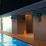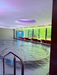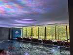 Никаких сомнений - одно из лучших мест для отдыха (как активного так и релакса). Большие и комфортные раздевалки, халаты и полотенца на входе, есть фенЫ (да, их много), весы, зеркала, шкафчики для хранения и сушилка для купальников (если не нужно, есть пакетики для мокрой одежды). Две большие чаши, соединены (под мостиком, кстати обратите внимание на потолок!!!), большой экран с пейзажами, часы. Есть несколько установок гидромассажа разной степени жесткости, есть кресла в воде для отдыха так-же с массажем, есть пара купелей с очень теплой водой, есть "лягушатник" для детей и взрослых (отдохнуть), есть лаунж-зона с видом на природу. Хамам и сауна (очень рекомендую)! Генератор льда (на выходе) и несколько душевых там же. В общем ,полный восторг. Днем в будни насчитали максимум человек 12-15, ближе к вечеру уже человек к 60, имейте ввиду. детей после 18:00 не пускают (так написано).