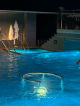 Ездили отдыхать с подругой. Приехали к 11, народу было уже много. Удивилась, что помещение с бассейном не очень большое, по фото кажется больше. Потолок чёрный, стены, показалось мрачно. Выдаётся всего одно полотенце. В какой-то момент мы перепутали наши полотенца с чужими, решили попросить новые, за ними пришлось идти к ресепшену. Полотенце дали, но как-то со скрипом, что называется. Всего две маленькие парилки, которые к 12 часам были забиты людьми. Решили пообедать в кафе прямо над водой. Цены выше среднего, завтраки после 11 уже недоступны. Салаты и пирожные нам тоже не достались, что-то у них сломалось. Взяла куриный суп, вкусно. Вообще не очень удобно сидеть в кафе в мокром купальнике и халате, но это так, мелочи. Брали билет на 4 часа, уже через полтора становится скучно, не знаю, что там делать дольше. Подруга хотела взять массаж, но сказали, все занято, надо заранее это заказывать. Зачем-то включили на большом экране мультфильм для детей с оглушающей музыкой. Приводишь ребёнка, чтобы он отвлекся от гаджетов и телевизора, а тут снова мультики)) не поняла этого. Плавали дети, некоторым вроде нравилось, но там из развлечений только надувные мячи. Хорошо, что не взяла туда своих оболтусов. В общем, нормально, но без восторга.