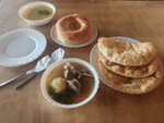 Останавливались лишь ради чебуреков и мантов. Чебуреки неплохи, но мяса слишком мало, да и не вызвали прям восторга - просто неплохие чебуреки. Манты понравились больше, но они маленькие, имейте ввиду. Вкусно, не прям дорого - сойдёт.