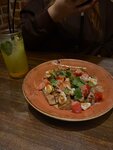 Борщ невероятный, ради него и захожу сюда. Заведение нормальное, есть бизнес-ланч (не пробовала, но посадка часто почти полная в эти часы). Пробовала карбонару, на любителя, бекон немного пересолили. Салат с авокадо и креветками отличный, но креветок всего 3 шт и обычные (невкусные) помидоры, вместо черри, пересмотрите технические карты (см фото)😅 Задумка у салата отличная, но помидоры портят все, да и количество креветок за салат в 600₽+ не очень. Зато напитки! отличные, что бы я ни попробовала: и чай, и лимонады. Барменам респект. В целом, кухня нормальная. Также отмечу шоколадный фондан, готовят сами (не привозной десерт), 10/10. По всем канонам. По времени ожидания ни разу вопросов не было, приходила всегда примерно в 15-17, быстро и корректно. Офики хорошие. Кстати, есть точка с павербанками, выручала меня, официант подсказал, как пользоваться. Звезду снимаю за салат, а также слишком тонкий шницель (супер много панировки было) и просьбы оплатить переводом.