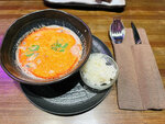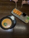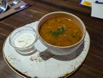 Заведение занимает первый этаж, внутри один большой зал, посадка в выходной день была близка к 40%. К сожалению, нет отдельного помещения для выдачи заказов курьерам, поэтому она осуществляется в самом зале. Бородинские чесночные гренки с соусом тартар. Подаются они с сыром пармезан, пикантным чесноком, крупной морской солью и соусом тартар. Внутри мягкие, а сверху чрезвычайно хрустящая, ароматная, промасленная корочка. Признаться, это наши самые любимые гренки. Том Ям - слегка обжигающей остротой с морепродуктами, шампиньонами, черри и кинзой, которые сплелись между собой в ароматной пряности оживляющей рецепторы. В общем, ничего лишнего, все в меру, в классическом виде. Вообщем качественная еда без изысков.
