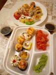 Вкусно , особенно с чаем !🍷 Васаби , имбирь все вкусное . Но роллы были разного размера , и очень долгая доставка , хотя мы находимся в 5 метрах от вас .