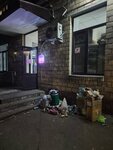 Мусор у входа, в основном транспортировочная упаковка, коробки. Грязно.