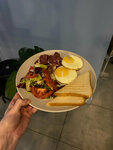 Очень уютно и вкусно ! Чай черный большой стакан с лимоном 200₽, сэндвич с красной рыбой 320₽ Алексей и Элина -милые и добрые ребята . Очень атмосферное кафе ! Очень рекомендую ! Музыка-лаундж.