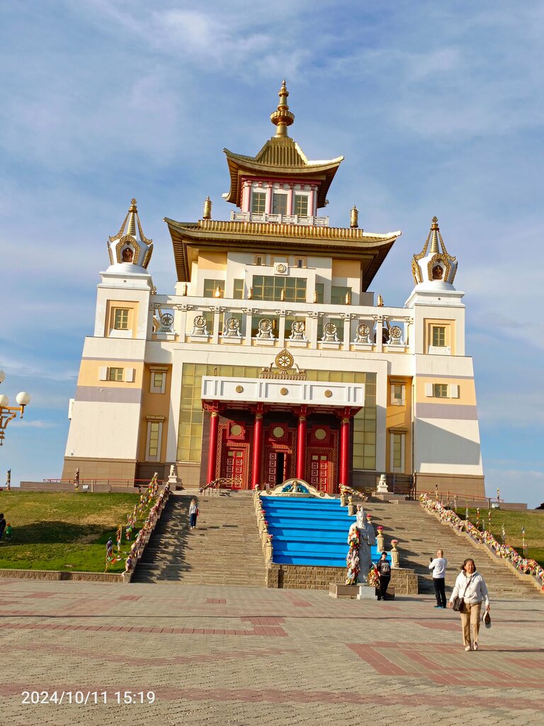 По счастливой случайности попали в Храм в дни проведения буддистской конференции в Элисте, когда привезли реликвии Будды. Очереди на вход были большие, но все было организовано на высшем уровне. Территория храма очень большая, можно долго ходить и разглядывать все вокруг, внутри невероятно красиво. Напротив храма есть сувенирный магазин, но цены там в разы выше, чем просто в центре города. Поэтому если хотите что-то освятить, купите заранее. От центра идти минут 20 прогулочным шагом. Впечатления от места самые приятные.