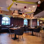 Зашла в этот ресторанчик по наитию, после прогулки по Волоколамску,чтобы пообедать. Была приятно удивлена уютной атмосферой и тем, что в будний столько людей занимает почти все столики в заведении. Значит хорошее место, подумалось мне) и я не ошиблась. Уютно, приятная прохлада, после уличного летнего зноя. Есть довольно приличная детская зона. Есть столики с розетками, для зарядки ваших девайсов. Весьма приличная санитарная комната, отделенная от остального пространства дополнительной дверью. Технический Прогресс не обошёл стороной и этот волоколамский ресторанчик, есть робот официант по имени Белла,для меня это довольно необычно. Официант Даша весьма милая и растропная. Быстренько приняла заказ, спросила в какой последовательности подать блюда. Заказ начали подавать достаточно быстро. Я заказала окрошку на квасе, сезонный салат с лисичками, лимонад и кофе в конце. Окрошка потрясающая, с говядиной, с прекрасным квасом, очень понравилось. Салат с лисичками просто вкусный, но не изысканный, но главное очень сытный. Капучино был прекрасен, вкус кофе прекрасный. Может ресторану на заказ обжаривают зерна? Единственная претензия наверное к меню, это то, что нет десертного меню. Если тебе хочется какого то десерта, то нужно встать и пройти к бару, к витрине и там выбрать то, что тебе приглянулось. Честно говоря ничего не приглянулось. Но возможно десертное меню в разработке. Посещением данного места очень довольна. Думаю, то, что там куча посетителей само за себя говорит, что ресторан успешен.