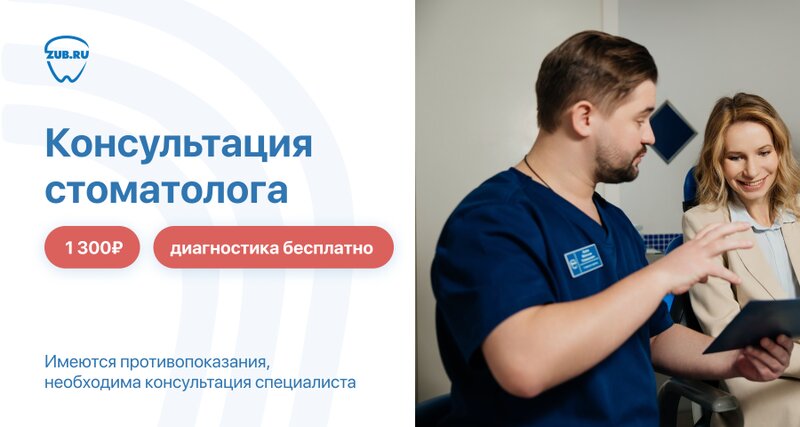 Консультация стоматолога — 1 300₽, диагностика бесплатно!