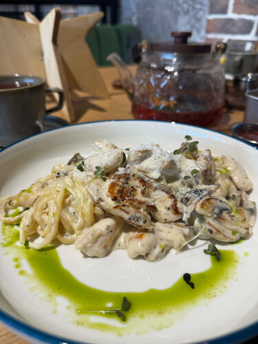 Посетили данное заведение уже в третий раз, всё что пробовали было вкусно, единственное в первый раз пицца показалась очень маленькой, ну так как заведение работало в тестовом режиме, на 2-3й раз размер уже был хороший. Для нас один минус, это отсутвие музыки, не хватает легкого лаунжа, поют лишь птицы и очень тихо, но это же не кабинет массажиста 🤪