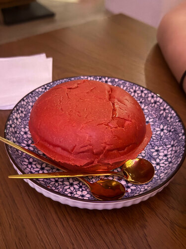 Классная атмосфера, тёмная и таинственная, разнообразная, вкусная и сытная еда, доброжелательный персонал, а за долгое ожидание предложили вкусный десерт