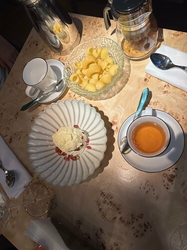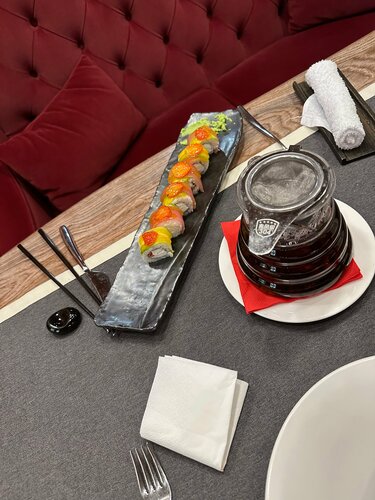 Обслуживание плохое , на веранде игнорируют , в зале соизволили подойти , , мы сделали заказ одно из блюд было роллы с клубникой , так как они были указаны после десерта и как бы логично предположить что это десертные роллы на удивление принесли роллы клубничные с рыбой , это конечно очень удивило , надо предупреждать хотя бы официантам или расписать в меню что это не десерт или не указывать их после десерта , сидели в двоем принесли чайник чая и одну пару под чай , тоже конечно странно … роллы тоже в целом не особо понравились , кладут очень много сыра … мы заказали три вида разных и везде чувствовался только он , вообщем разочарование