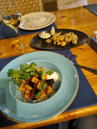 Вкусно, меню разнообразное, барабуля приготовлена достойно, внутри сочная, приятное вино. Атмосферно, три уровня: первый непосредственно на променаде, второй - закрытая веранда, третий - "палубный" с отличным видом на море, ненавязчивая музыка, хорошее обслуживание. Цена соответствует качеству.