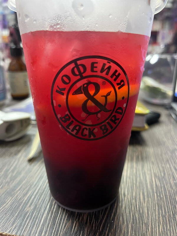Уже пару месяцев не беру там кофе, он стал у них жутко горьким, но утром очень захотелось холодного чая. Цена данного стаканчика 220р + 20р за лед ( да, если хотите холодный напиток, то 20р надо доплатить). В составе должен был быть черный чай, смородина, лимон и мед. По итогу мы получаем вода без газа с давленной кислючей смородиной и дольку лимона, ну и три льдинки за 20р. Ни ноты чая, иногда прям хочется дать баристе попробовать. Стакан улетел в мусорку, волчем , как и всегда 17.07 9:40.