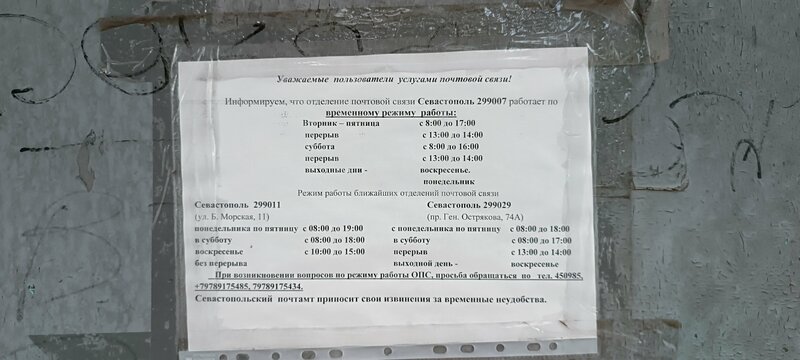 Otdeleniye pochtovoy svyazi Sevastopol 299007