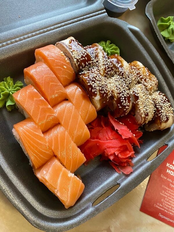 Заказывали у вас впервые. Роллы вкусные, начинки много,рис хорошо проварен. Имбиря положили достаточно. Соевый соус показался немного соленым. Привезли все в течении часа, как и обещали.