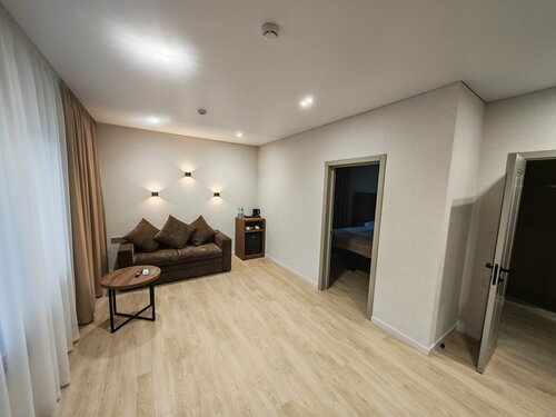 Отель расположен в живописном месте. Есть парковка, ресторан и зона для барбекю. Сотрудники отзывчивый и приятный. Номерной фонд небольшой но номера очень большие. В целом все чисто и аккуратно, без изысков но достойно. Готовят не плохо. В качестве рекомендации для удобства самого отеля считаю рациональным вернуть шведский стол. А не порционнцю выдачу. Так же задумка прилегающей территории очень интересна поэтому желаю ее воплотить в жизнь!