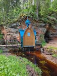 Атмосферное место: купель часовня, наполняемся водой из живого источника. В небольшой пещере бьёт ключ, все вокруг заставлено иконками. Судя по надписи на кресте на холме у источника в 15-16 веках здесь был храм. Если пройти налево от спуска к источнику, есть длинная природная пещера. Все камни вокруг исцарапаны надписями такого рода: "здесь был Вася".