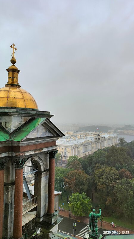 Были на экскурсии на смотровой площадке собора, от сюда открывается шикарный вид на исторический центр города. Из минусов только погода помешала полностью насладиться видами города, т.к. лил проливной дождь. Ну, что же это Питер))...