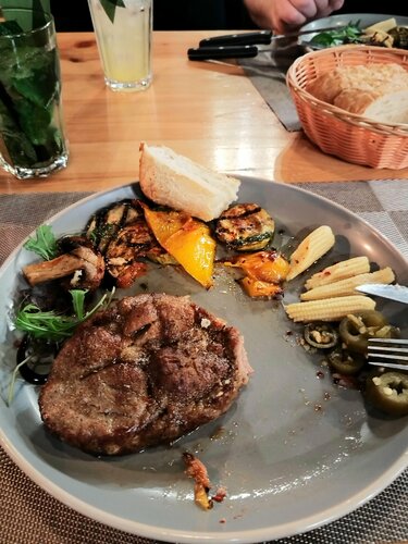 Классное местечко, уютное. Есть большой зал внутри, есть типа веранды. Все вкусно, цены приемлемые. Брали салат Нисуаз, свинину на гриле, овощи, напитки, все понравилось