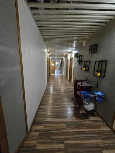Почти всё отлично, чисто, удобные матрасы, на двухспальной кровати четыре добротные подушки, чай/сахар, кипяток/микроволновка на этаже, в душевой кабине гель и шампунь+ жидкое мыло. Прикольный дизайн помещений. Одну звезду добавила за стоимость. Из минусов:1) слишком тонкие тапочки 2)много высоких ступенек (лифта нет) 3) плохая звукоизоляция, но если повезёт с соседями, то будет тихо. Персонал почти невидим, только на ресепшн кто-то есть постоянно.