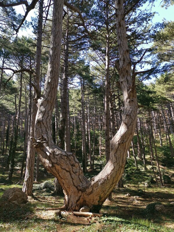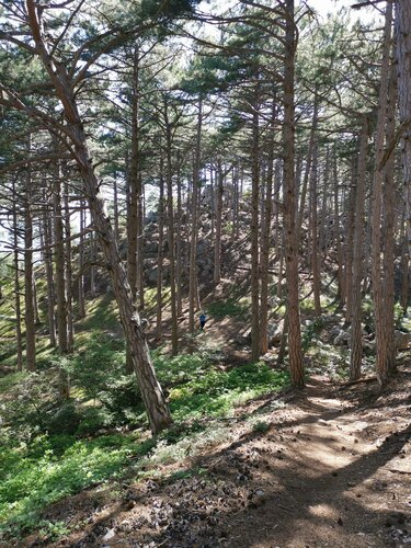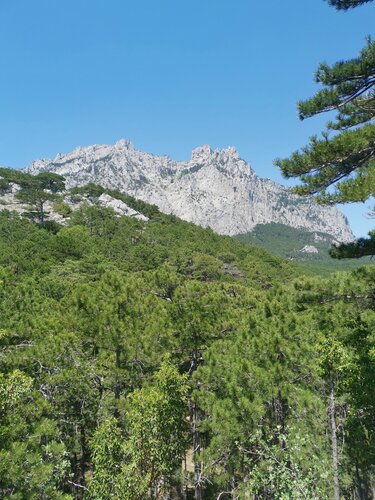 Маршрут круговой, начали обходить гору Крестовую справа, мимо источника, спуск более крутой слева оказался. Очень красивый лес, шикарные сосны, много земляничника ( деревья), необычного цвета стволы. На Крестовой есть смотровые площадки, виды открываются захватывающие, видны зубцы Ай Петри, канатная дорога ( уже работает)))), если присмотреться через камеру телефона видно Ласточкино гнездо, симпатичные южнобережные посёлки, море просто шикарное, видна гора Кошка. Очень красивые сосны, есть несколько участков молоденьких сосенок, начиная от буквально 10 см и до метров 2-х и больше, очень густо повыростали. Там, где пригревает солнышко сквозь сосны - чудный хвойный запах, на тропе ковёр из опавшей хвои и огромное количество шишек. Посетите, не пожалеете, подышите южнобережным Крымским воздухом, зарядитесь энергией леса, получите массу впечатлений.