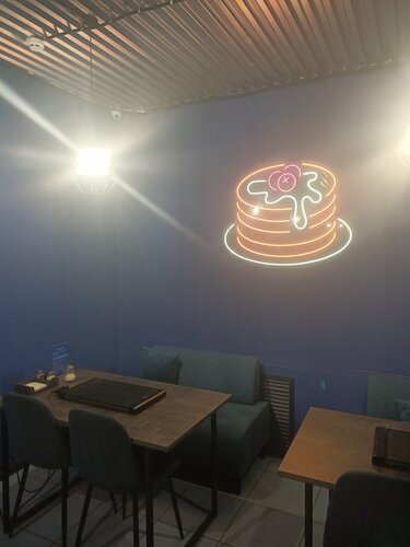 Интересное ноу-хау: прямо за своим столиком можно приготовить себе формачные пироженные из широкого набора - как теста, так и добавок в виде различных ингридиентов: кокосовая стружка, карамель, банановый наплолнитель, ананас, миндальные лепестки, голубика, сыры, арахисовая паста и мн. других. Есть и кафешечные: кофе, чаи и прохладительные напитки ;) Играет приятная музыка. Уютная атмосфера. Можно придти с ноутбуком (есть возможность подключить питание к розетке) и за чашечкой эсперессо, раф, латте или доппио - поработать. Одно из лучших мест Новомосковска