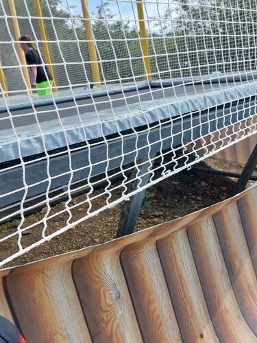 Были в парке 03.06.2023. Впечатление крайне унылое, зря потраченные деньги и время. Деревянные настилы болтаются под ногами, их давно следовало починить. В "зоопарке" кругом грязь, животные в этой грязи, чистой воды нет, сплошные помои, закисшие с остатком корма. Благородный олень по грудь в глине. У ворона совсем нет воды, он с открытым от жары клювом мечется по клетке. Отдельным пунктом идет батут для детей. К нему не обеспечен безопасный подход, приходится карабкаться с детьми почти вертикально все по той же грязи. Грязь везде - у батута, на лестнице, внутри него. На стенке батута гордо висит табличка, что вход в обуви влечет за собой штраф в 50000 рублей. Носки и одежда после посещения этого дивного аттракциона безнадежно испорчены. Часть сетки оторвана от стенки, на наших глазах мальчик выпал на землю и ударился головой до крови. В центре батута дыра. Рядом наблюдает за происходящим работник, от которого ужасно пахнет в радиусе полутора метров. Из плюсов, разве что, красивейший вид с любой точки.