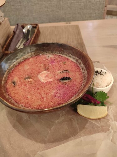 Качество блюд среднее. 🤔 Обслуживание медленное, подача блюд долгая при небольшой загрузке, может на четверть. 🥱 Цены тоже не самые низкие. 🫣 Подозреваю, высокий рейтинг вызван в первую очередь акцией "бесплатный коктейль за рекомендацию на Яндексе" 🍹😁
