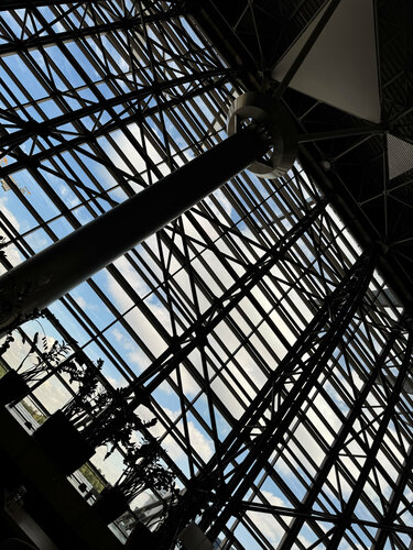 Опустел ТЦ. Площади огромные, а занимать их некому. Рабочие бутики через 2-3 площади, народа мало, - ничего не приглянулось. В который раз удивляюсь планировке ТЦ - как ориентироваться, чтобы осмотреть максимум, - не понятно. Ходишь по каким-то закоулкам и ничего не можешь найти 🤷‍♀️ В общем из достопримечательностей - выставка картин и пара манекенов в платьях (типа инсталляции какой-то)