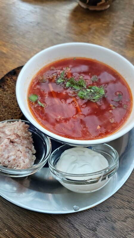 Из плюсов конечно "сельская концепция" , локация, ценообразование. В минусы можно записать ее же (концепцию) так как ..ну тогда ,второй раз не приходи в общем ) В целом угар и ***. По блюдам которые удалось отведать : Чебуреки - ок Салат из овощей -ок Борщ - не ок. Принесли теплый (едал на улице 4 ноября. Погорячее бы). И сам борщ не ок. Не наваристо , не борщисто. Но самое главное там была какая-то восточная специя , не присущая этому блюду и полностью туда не вписывающаяся. Зачем, почему? Нет ответа , но я и не спрашивал. Просто борщ -не ок. Остальное прям все вместе забавно и рекомендую .