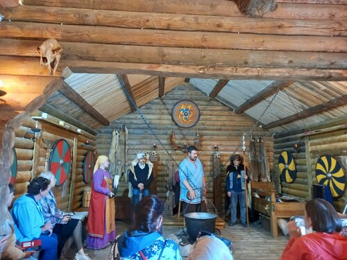 Посетили пир у князя в Древней Руси и жилище викинга. Очень интересные рассказы про древние традиции плюс интерактивное представление. Наряжали в костюмы князя, воинов и викингов. А какая там природа!